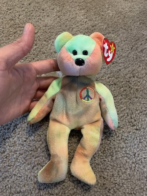 TY Beanie Baby PEACE BEAR. Great deals on Peace Bear Beanie Baby. Symbols of peace and love abound. The Appraiser can help. I have a peace beanie baby and I need an appraisal. TY Peace Beanie Baby Bears Birthday February 1 1996 Hippie Theme Grateful Dead Peace Peace Sign Love Multi Color Beanie Babies Peace sign multi-color TY Beanie Baby Bears Birthday February 1 1996 Great condition The two bears shown together do not have tags but all the other bears do have. Dotty the dog dob.