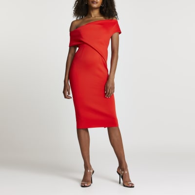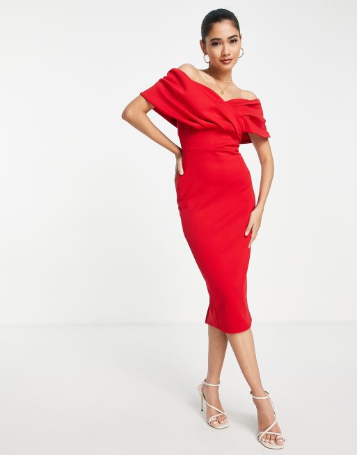 Red Off The Shoulder Dress Midi