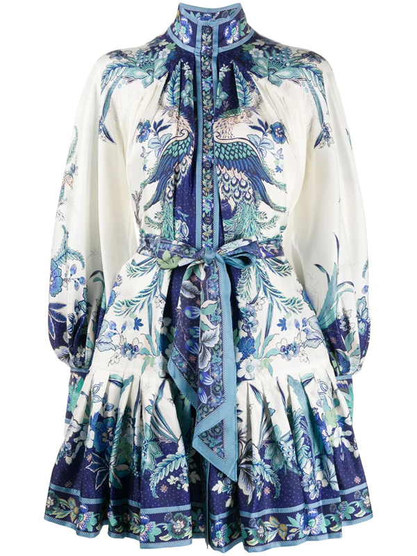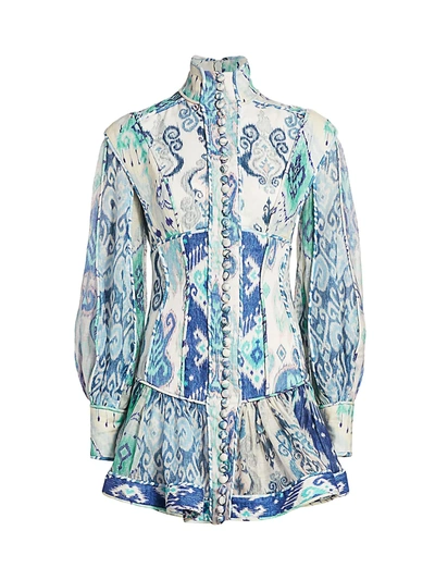 Hire ZIMMERMANN Glassy Long-Sleeve Mini Dress Blue Ikat.